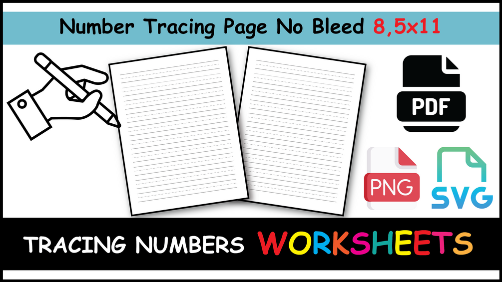 Number Tracing page 8,5x11 No Bleed with PNG, SVG files and pdf with 120 page Ready To Upload and Published